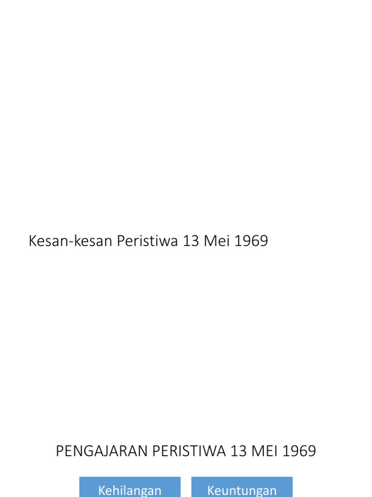 Related : Kesan Peristiwa 13 Mei 1969 - Pengajaran peristiwa 13 mei rusuhan kaum pada 13 mei 1969 adalah peristiwa tragis yang terburuk dialami oleh malaysia dan peristiwa itu peristiwa 13 mei 1969 merupakan satu titik tolak ke arah kebaikan kepada negara kita kerana selepas sahaja peristiwa tersebut berlaku semua pihak..
